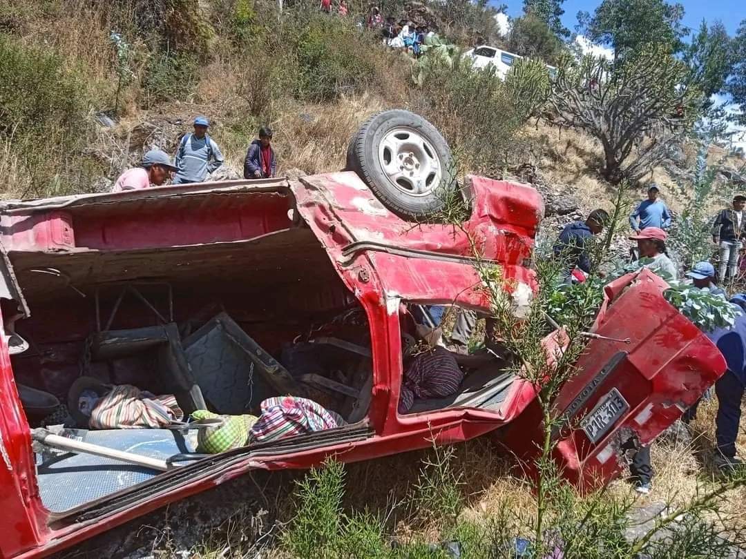 El fatídico incidente ocurrió alrededor del mediodía, cuando el vehículo de color rojo, en el que viajaban adultos mayores junto a sus familiares, sufrió un accidente. Las víctimas fueron identificadas como Julia Damiana Carahuanco de Sánchez y Amador Ponce Huallpa.